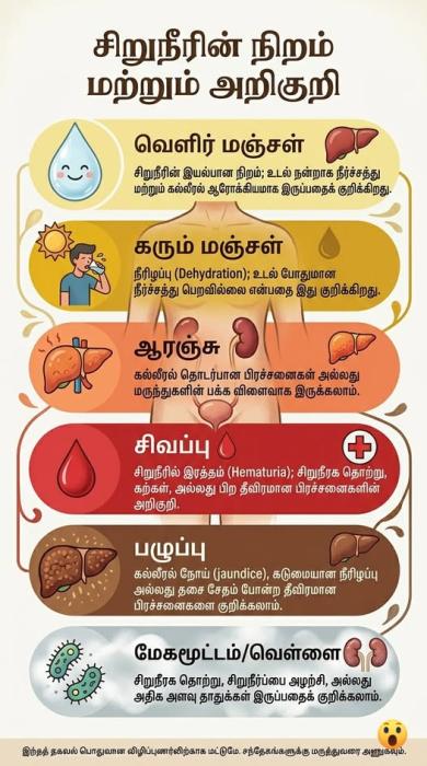 ஆகவே, மூத்திரத்தின் நிறத்தை சரியாகப் புரிந்துகொள்வது ஆரோக்கியமான வாழ்க்கைக்கு உதவியாக இருக்கும்.